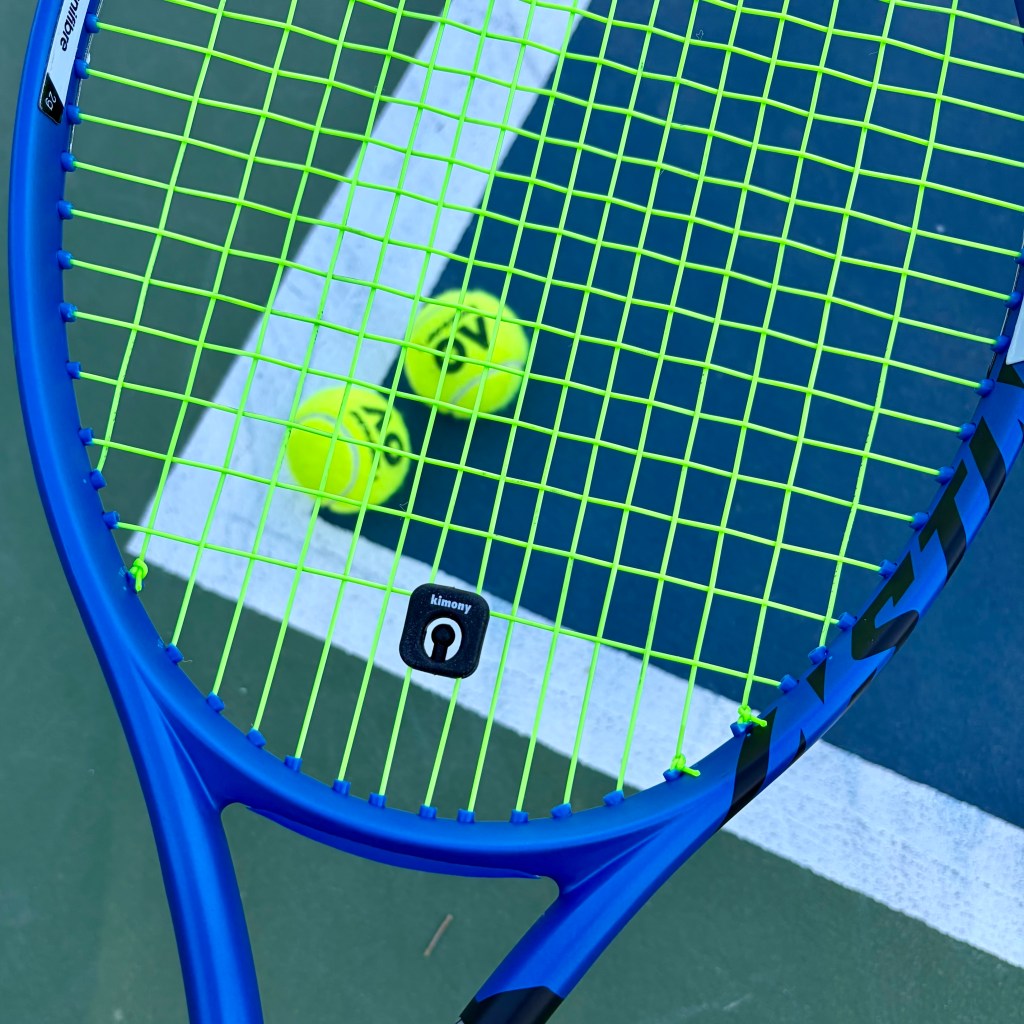 I think I’ve used most of Kimony’s replacement and overgrips and each has been excellent, at least on par with offerings from much larger companies with more familiar names. But, this is my first experience with their dampener, The Quake Buster (or how I wish I could use the iOS Text Effects to make the letters in Quake explode!). As usual, I was first attracted to the available colors (I chose clear and black). But I had another motive respective to trying the Quake Buster and that was the way it attaches to the racket at the top and sides and the fact that it’s basically square (so as to maximize string contact) and also the fact that the experience of others who wrote about their experience with the Quake Buster state that the dampener is quitesoft.