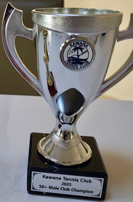 Then, a few days ago, I got this photo from Stew. He had won his club’s, The Kawana Tennis Club, Over-50 Men’s Singles Championship (I told you he was good!). Of course, I’m happy for Stew and he told me he was chuffed. Still, I miss Stew and miss playing with him (in that order). I don’t know how it could happen but I hope our paths cross again. Stew’s a great guy to play tennis with and he taught me a lot without even trying.